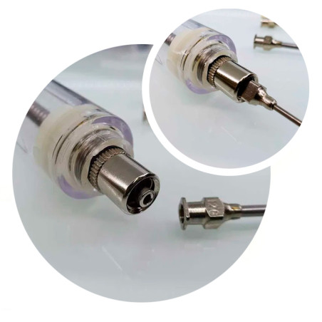 - - Seringa totalmente desmontável, tubo de medição de dosagem precisa com êmbolo em aço inoxidável.
